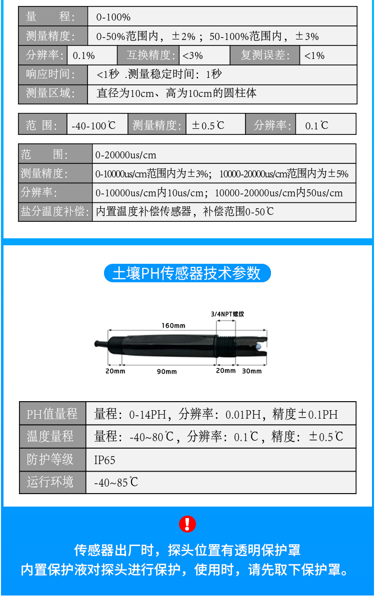 測量精度:0-50%(m3/m3)范圍內)±2%(m3/m3);