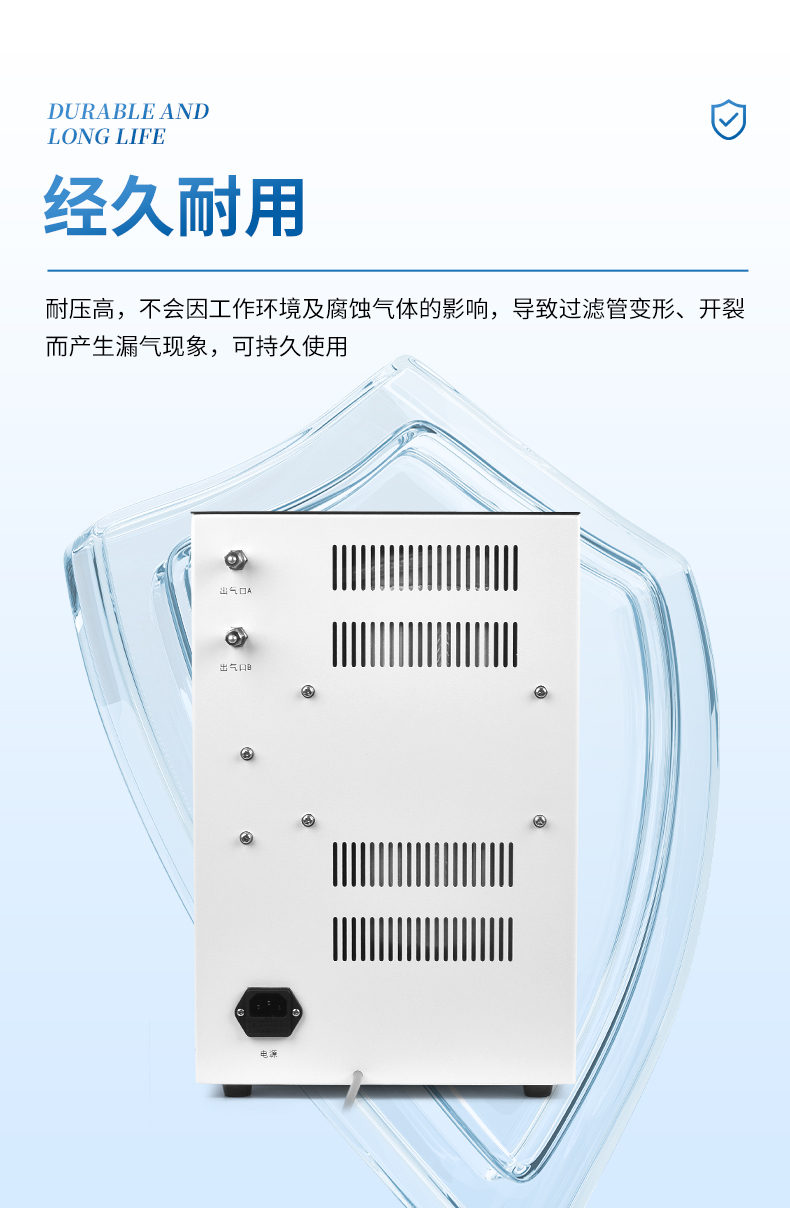 4、體積小,雙支FV型亞克力過濾器,耐壓高,不會因工作環境及腐蝕氣體的影響,導致過濾管變形,開裂而產生漏氣現象,可持久使用,一勞永逸。