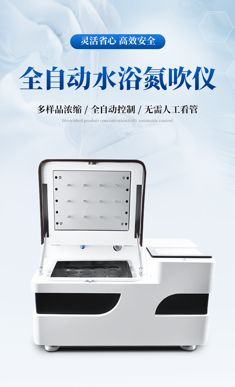 全自動(dòng)多功能干式氮吹儀YP-QD24G是我司結(jié)合實(shí)驗(yàn)室使用需求,從使用者方便安全快捷穩(wěn)定等多角度共同開(kāi)發(fā)的新型濃縮定容產(chǎn)品,產(chǎn)品擺脫了常規(guī)市場(chǎng)上利用水浴加熱揮發(fā)而導(dǎo)致樣品進(jìn)行污染的弊端,確定樣品的安全性與準(zhǔn)確性,具有無(wú)人值守、準(zhǔn)確定容、大批量濃縮的特點(diǎn),可多組數(shù)據(jù)儲(chǔ)存功能,實(shí)現(xiàn)了全自動(dòng)化的定量及批量濃縮,濃縮全程,讓繁瑣的濃縮過(guò)程變得靈活、省心、高效和安全。
