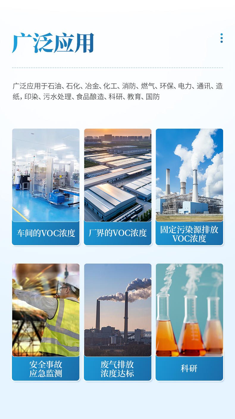 手持式VOC檢測儀主要用于檢測車間的VOC濃度、廠界的VOC濃度、固定污染源排放VOC濃度、安全事故應急監(jiān)測、廢氣排放濃度達標快速檢測。