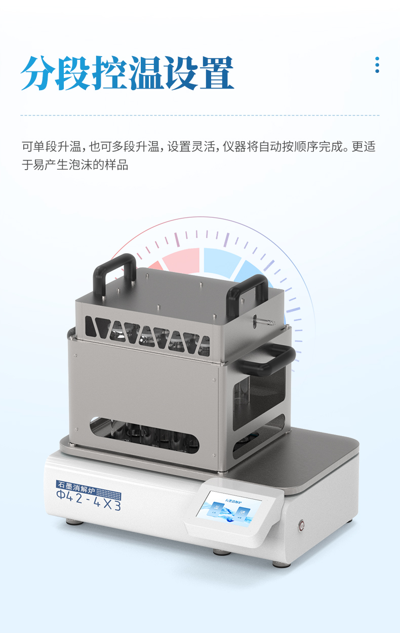 分段控溫設(shè)置,即可單段升溫,也可多段升溫,設(shè)置靈活,儀器將自動(dòng)按順序完成。更適于易產(chǎn)生泡沫的樣品。