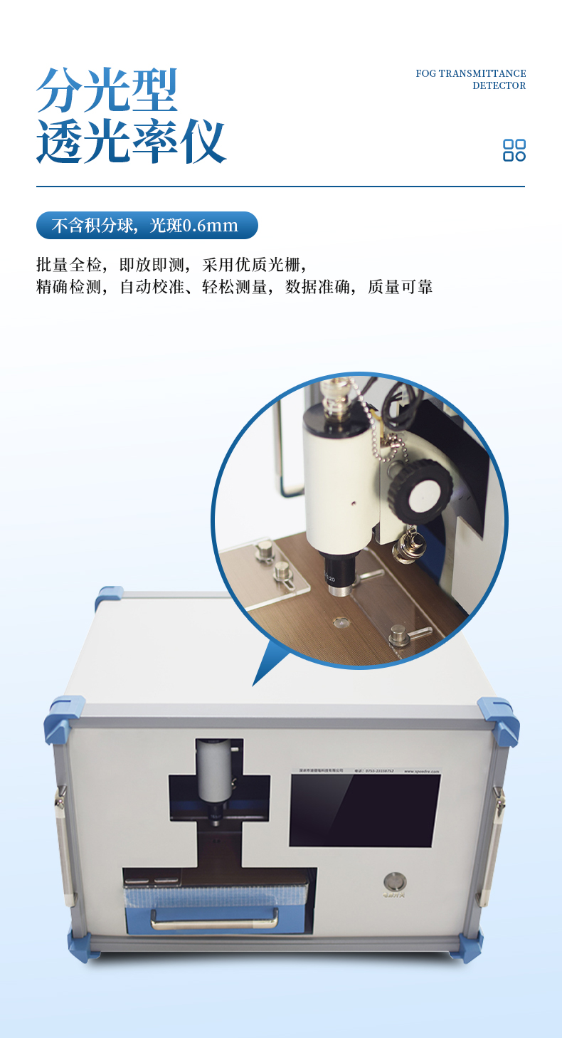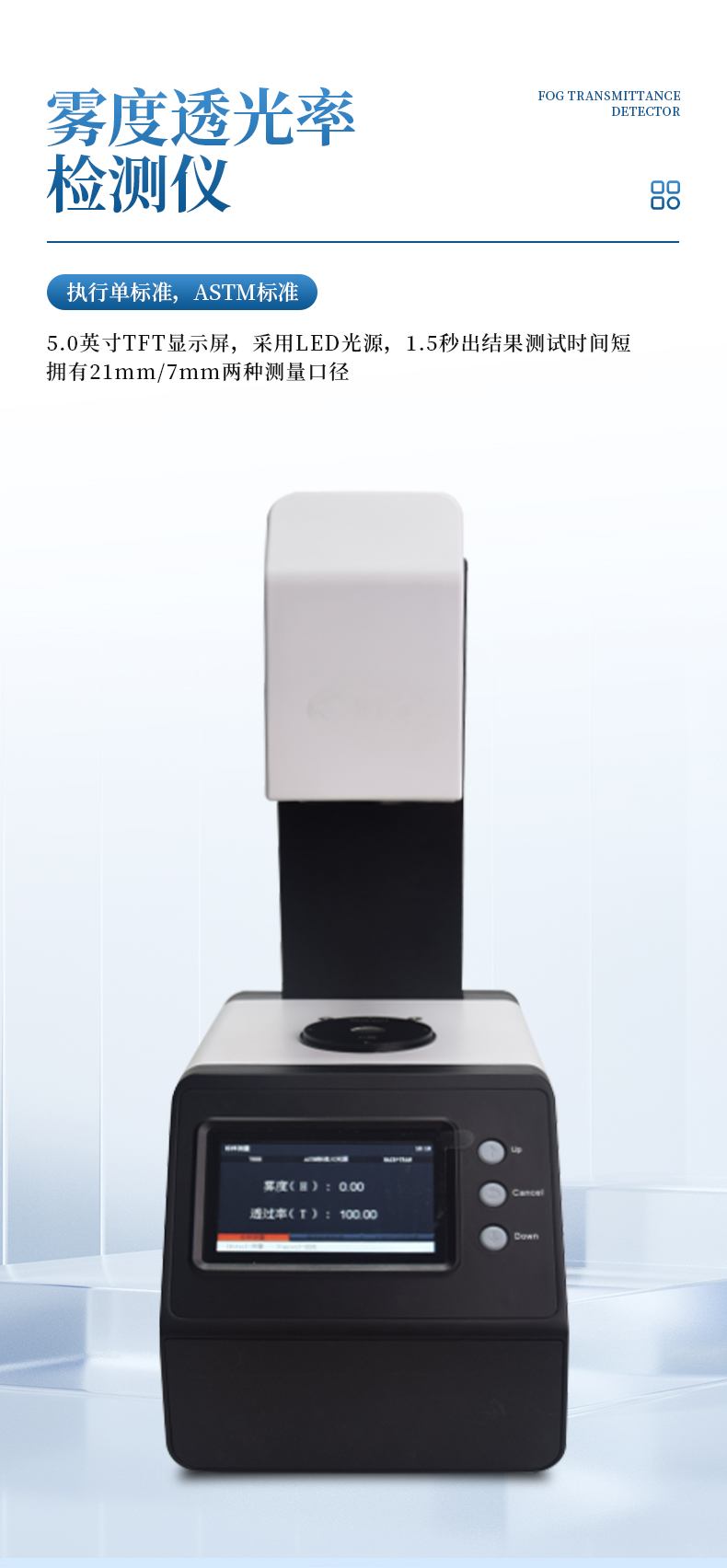 霧度透光率綜合儀是一款采用ASTM標(biāo)準(zhǔn),雙口徑(21mm/7mm)適用于測(cè)定塑料、薄膜、玻璃、LCD面板、觸摸屏等透明、半透明平行平面材料的霧度、總透光率的儀器。測(cè)試樣品有,AG玻璃,眼鏡,手機(jī)蓋板,手機(jī)殼,薄膜,燈罩等, 廣泛應(yīng)用于實(shí)驗(yàn)室、工廠、或現(xiàn)場(chǎng)操作,足以在幾乎所有應(yīng)用領(lǐng)域的質(zhì)量控制中實(shí)現(xiàn)最佳的霧度測(cè)量。