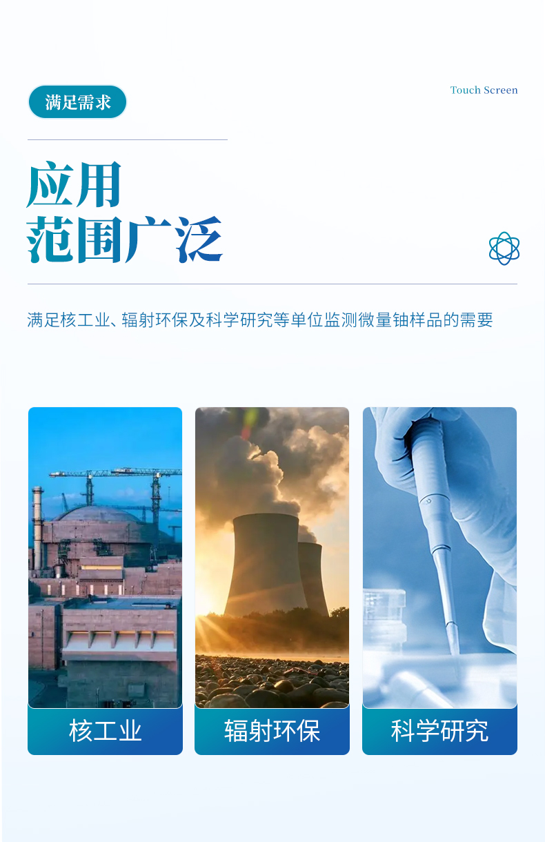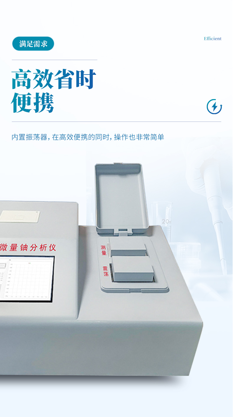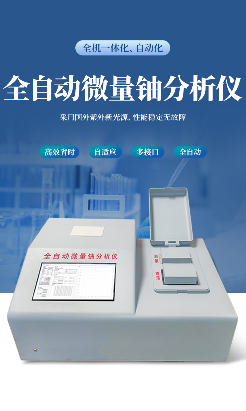 為了滿足核工業、輻射環保及科學研究等單位監測微量鈾樣品的需要,我公司最新研制成功全自動微量鈾分析儀。儀器設計采用國外著名公司生產的紫外新光源,該光源的主要特點是性能穩定無故障;所用的脈沖光管壽命≥5 年,如用標準加入法能分析8萬個樣品。電路設計采用新型的單片機,測試時的所有操作只要按中文提示輕輕點擊液晶觸摸屏上的對應選項,設備內置震蕩功能,避免了外部使用振蕩器的問題,全機一體化、自動化。震蕩完成后可選擇就可用標準加入法、工作曲線法分析樣品。并由單片機自動作出回歸曲線,線性回歸方程式,直接進行數據處理,液晶屏顯示及打印機打印能同時給出樣品測試的最終結果。該儀器設有以太網100Base-T4網口。可把測試數據直接輸入計算機,是同類儀器的升級換代產品。