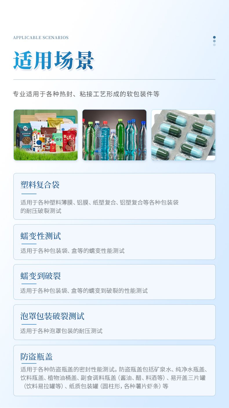 塑料復合袋 | 適用于各種塑料薄膜、鋁膜、紙塑復合、鋁塑復合等各種包裝袋的耐壓破裂測試 |