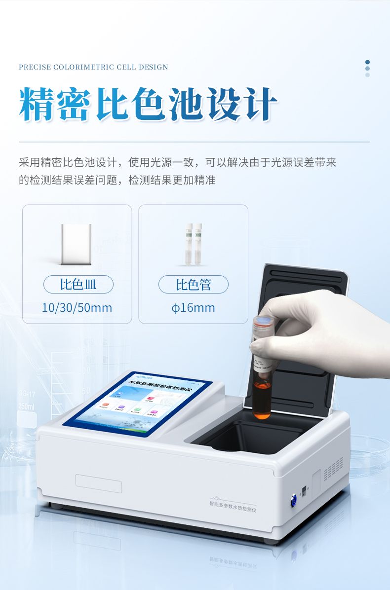 3、采用精密比色池設(shè)計(jì),使用光源一致,可以解決由于光源誤差帶來的檢測結(jié)果誤差問題,檢測結(jié)果更加精準(zhǔn)。