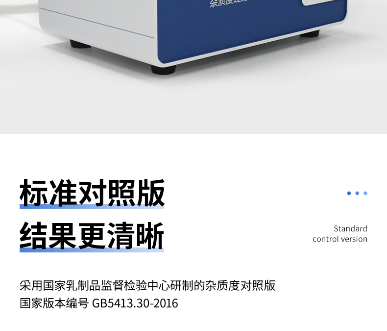 標(biāo)準(zhǔn)對(duì)照版采用國(guó)家乳制品監(jiān)督檢驗(yàn)中心研制的雜質(zhì)度對(duì)照版,國(guó)家版本編號(hào) GB5413.30-2016。
