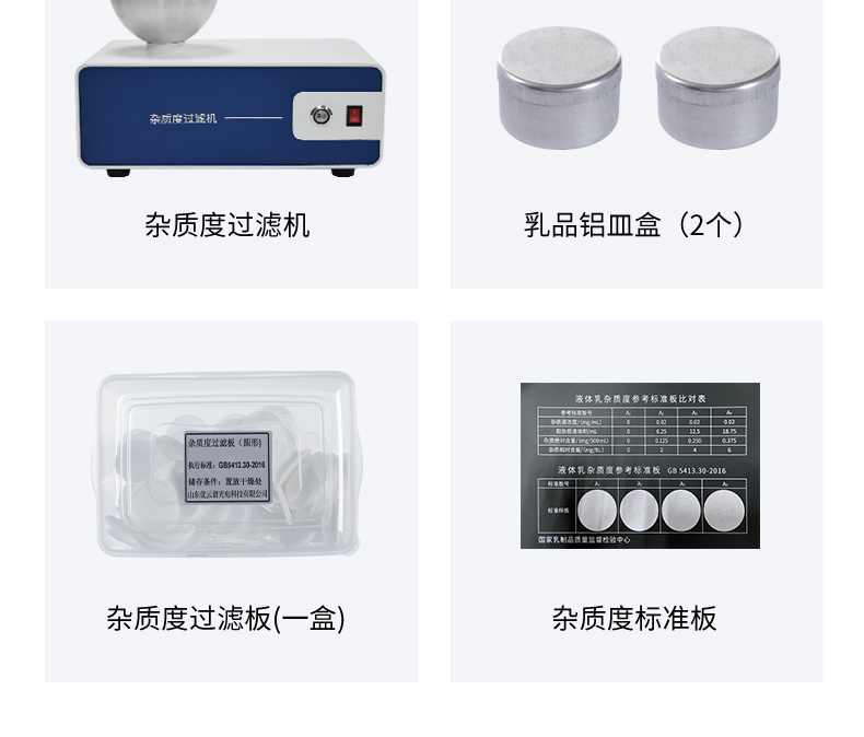 配置:主機(jī)一臺(tái),乳品鋁皿盒二個(gè),雜質(zhì)度過(guò)濾板一盒,雜質(zhì)度標(biāo)準(zhǔn)板一張,雜質(zhì)度標(biāo)準(zhǔn)板使用說(shuō)明一份,雜質(zhì)度過(guò)濾機(jī)使用說(shuō)明書一份,實(shí)驗(yàn)規(guī)范一份,合格證一張)