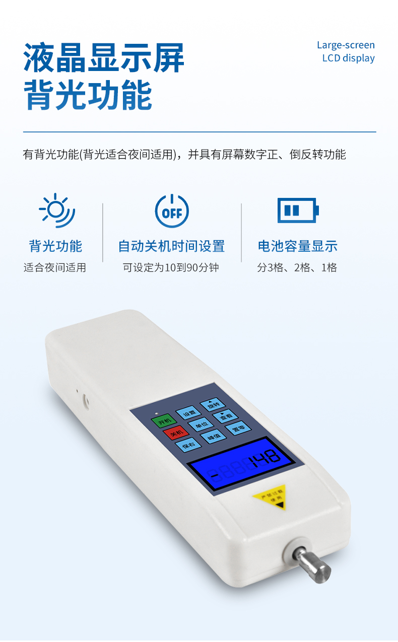 最大負荷:50N (其他量程可定制,N、Kg和ib三種單位可自動轉換)